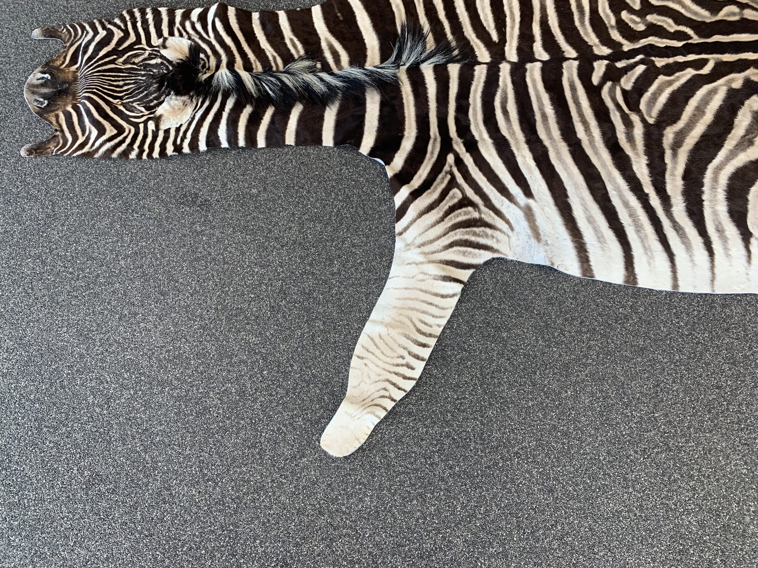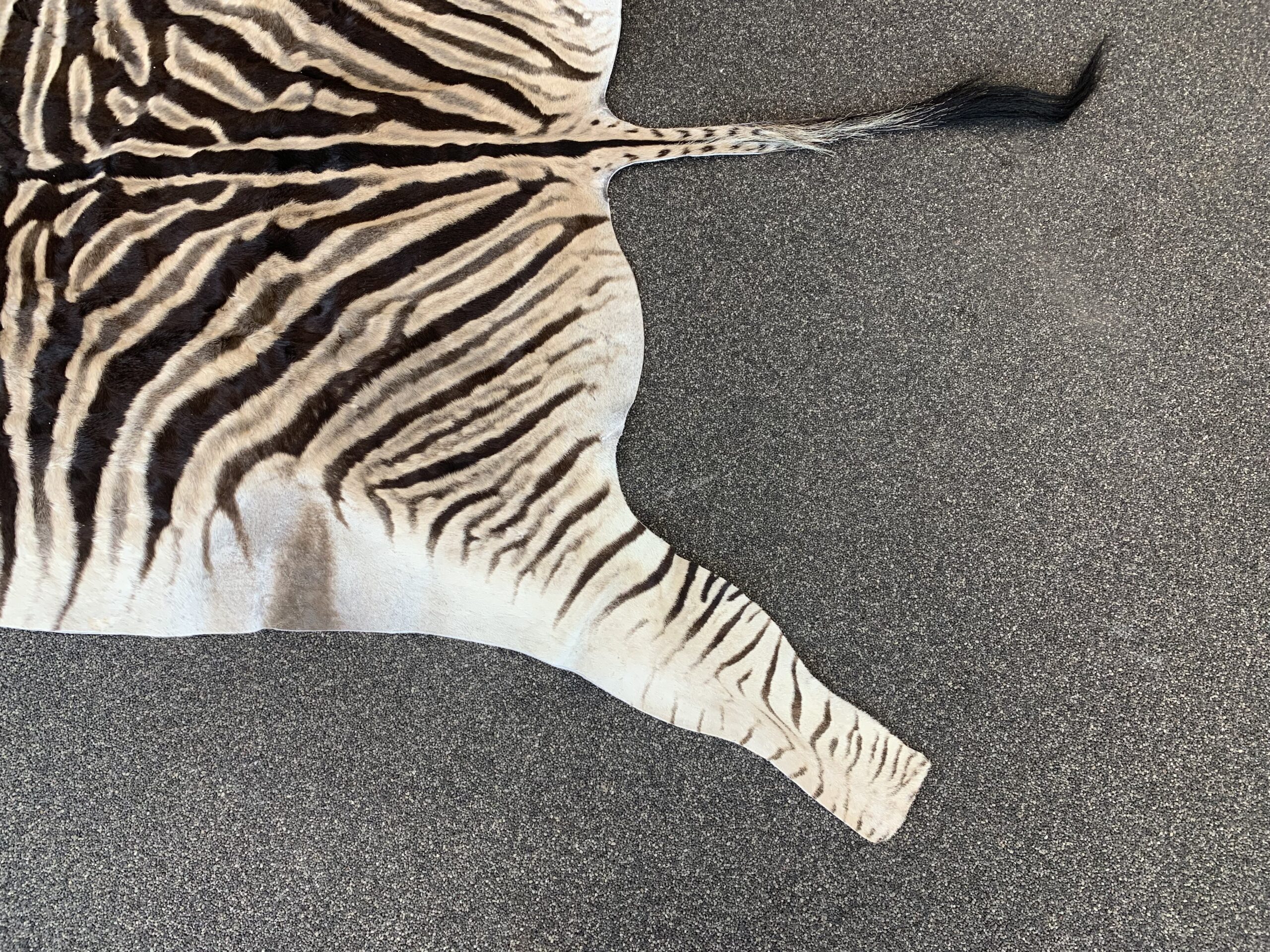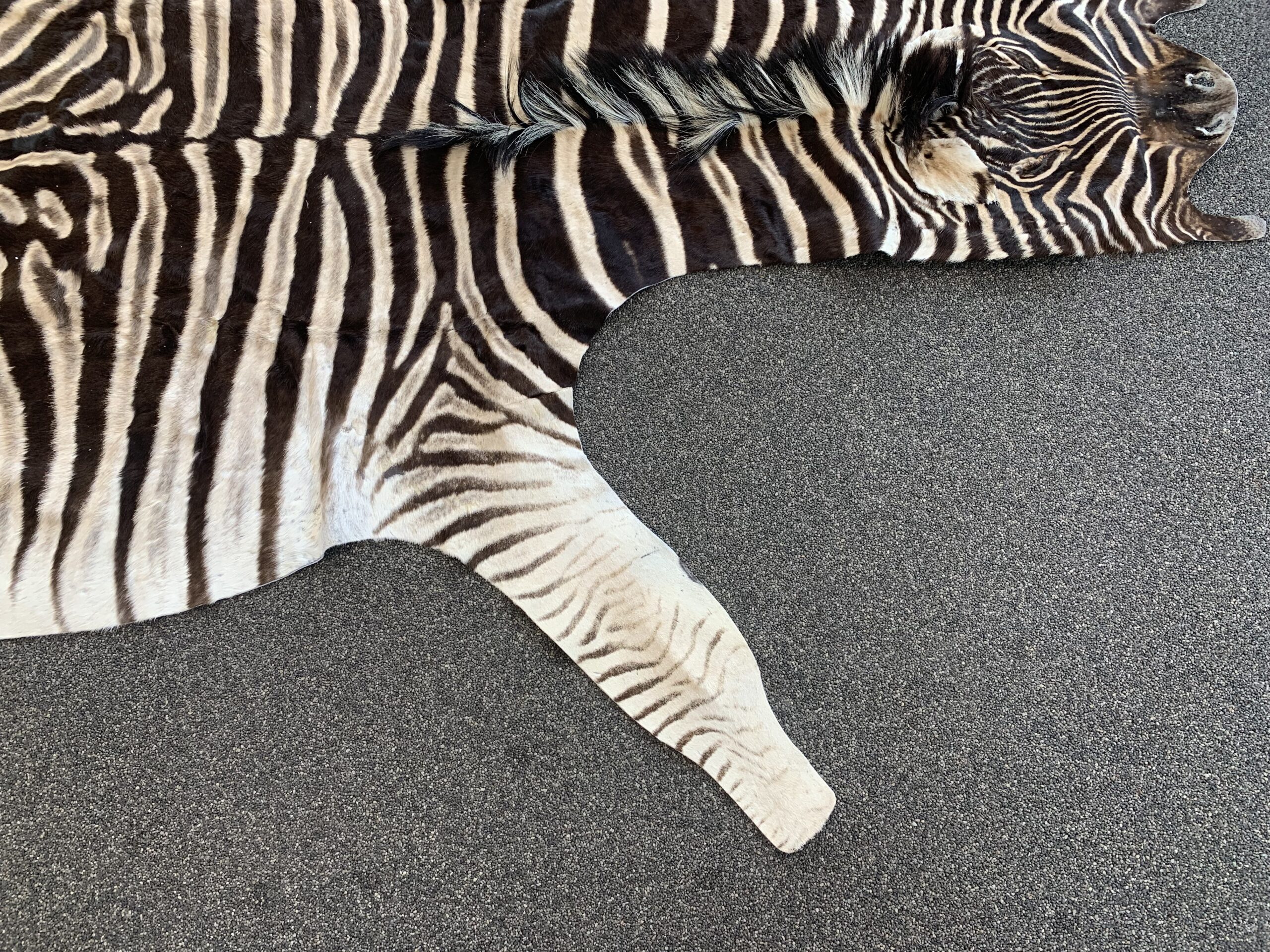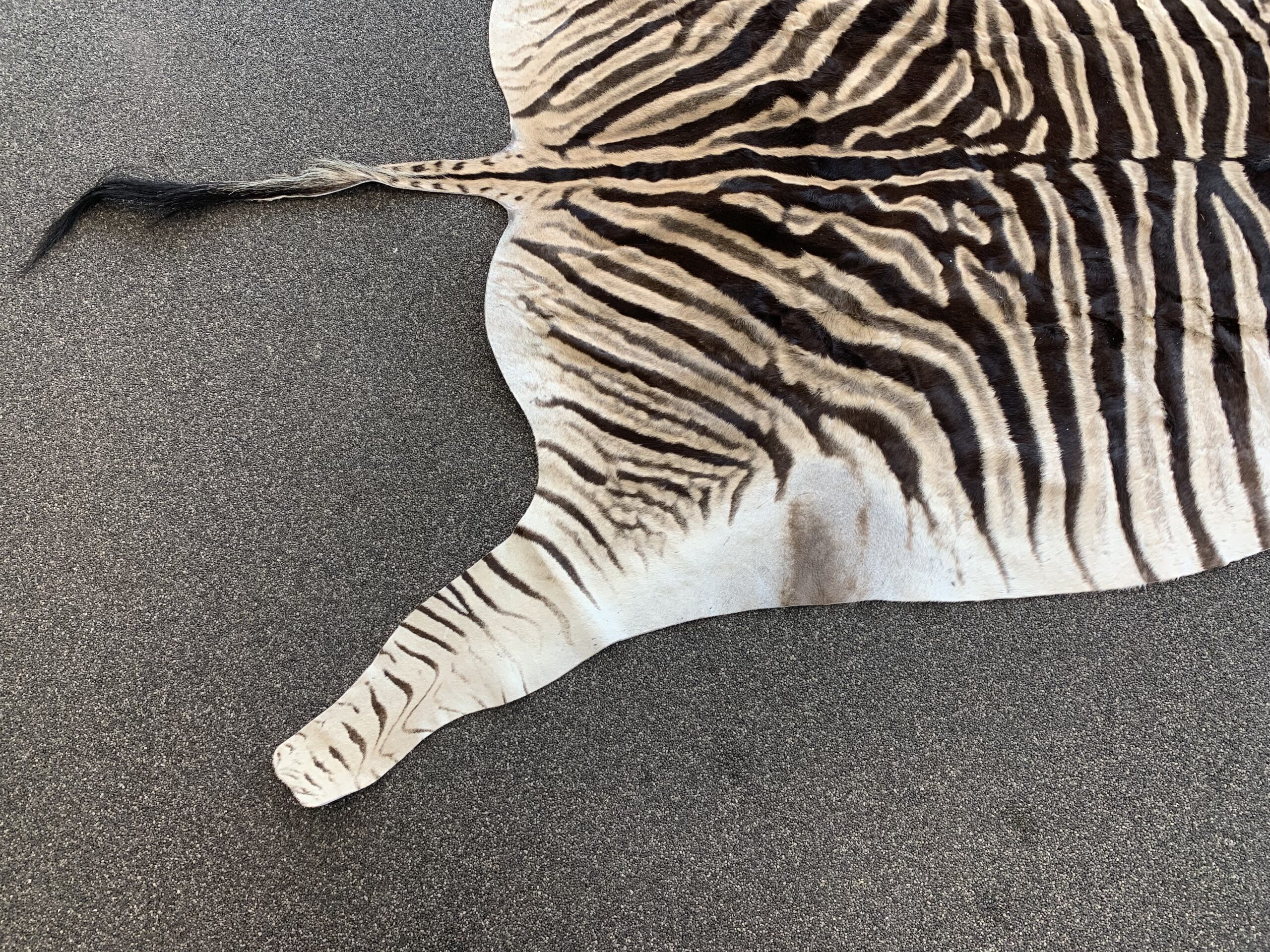 Deze zebra’s hebben een uniek strepenpatroon en onderscheid zich van andere zebra’s omdat de strepen in de vacht tot aan de buik doorlopen. Men denk vaak dat een zebrahuid zwart wit is maar dat is niet zo je zult zien dat een originele zebrahuid prachtige warme kleuren heeft.
