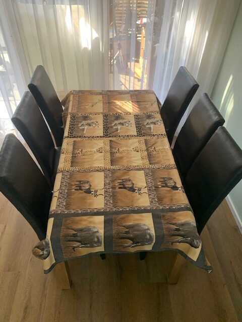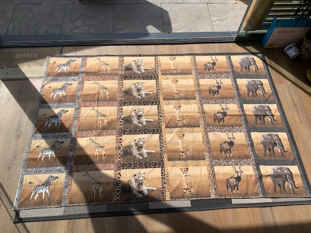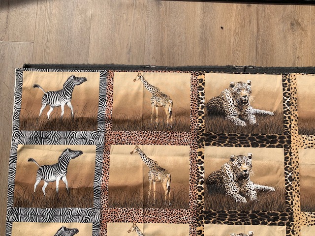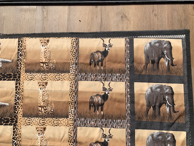 Een mooi groot bedrukt tafelkleed met dieren afbeeldingen. Wordt in Afrika ook wel gebruikt om placemats van te maken.